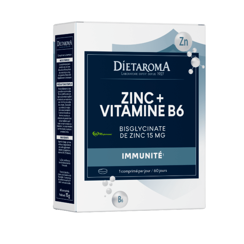La formule concentrée en Zinc Vitamine B6 de Dietaroma aide à booster les défenses immunitaires de l’organisme pour que votre corps puisse mieux résister aux changements de saisons et lutter contre les diverses affections telles que nez qui coule, rhume, refroidissement…