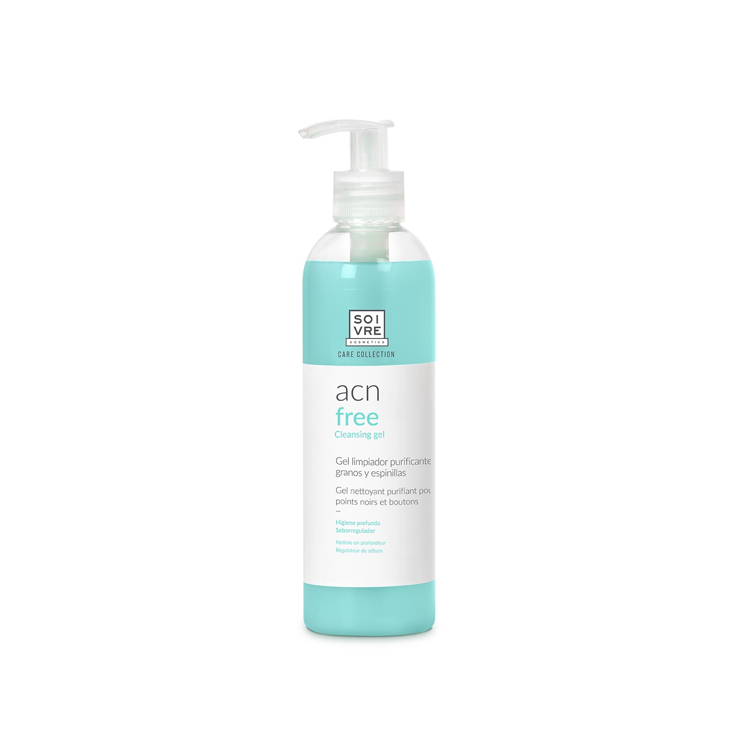 Gel Nettoyant Purifiant ACN FREE de Soivre Care Collection pour les peaux à tendance acnéique, les imperfections et les pores obstrués. Formulé avec des ingrédients actifs naturels, il exerce une double action en éliminant les impuretés et les imperfections de la peau tout en régulant l’excès de sébum. Grâce à ses propriétés émollientes et hydratantes, ce gel équilibre, apaise et adoucit la peau. Avec sa texture agréable et son arôme rafraîchissant, il ne dessèche pas la peau et apporte une sensation de fraîcheur durable. Idéal pour un soin quotidien.
