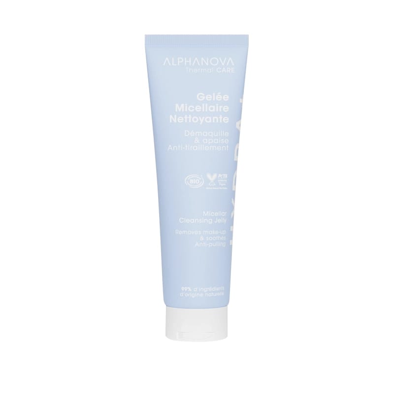 La gelée micellaire nettoyante Alphanova Thermal Care démaquille et apaise la peau grâce à sa texture fondante qui forme un film protecteur. Sa formule thermale associe le Bleuet et l’Aloe Vera à l’acide hyaluronique hydratant. Ses micelles éliminent les impuretés accumulées (pollution, maquillage…) et l’excès de sébum sans agresser la peau ni la dessécher. Ces actifs complémentaires réparent et apaisent les peaux sujettes aux irritations et tiraillements. Le teint est éclatant, la peau est nette, tonifiée et réconfortée.