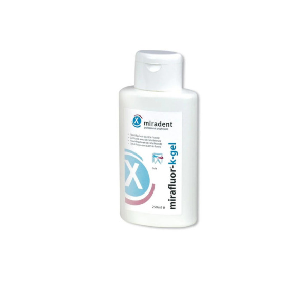 Le gel mirafluor est un gel fluoré pour la prophylaxie des caries avec du fluorure de sodium. Le gel renforce l’émail et freine la formation de la plaque.